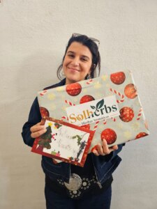 Como reconocimiento a su trabajo, Ángela recibió un caballete de madera y un estuche de acuarelas, entregados el pasado lunes durante el festival de Navidad del centro escolar. Además, su diseño será la imagen que Solherbs utilizará en sus felicitaciones navideñas de 2025, tanto para el equipo interno como para clientes cercanos, dentro de nuestra actividad como empresa especializada en la distribución y venta de hierbas aromáticas y hortalizas en España.